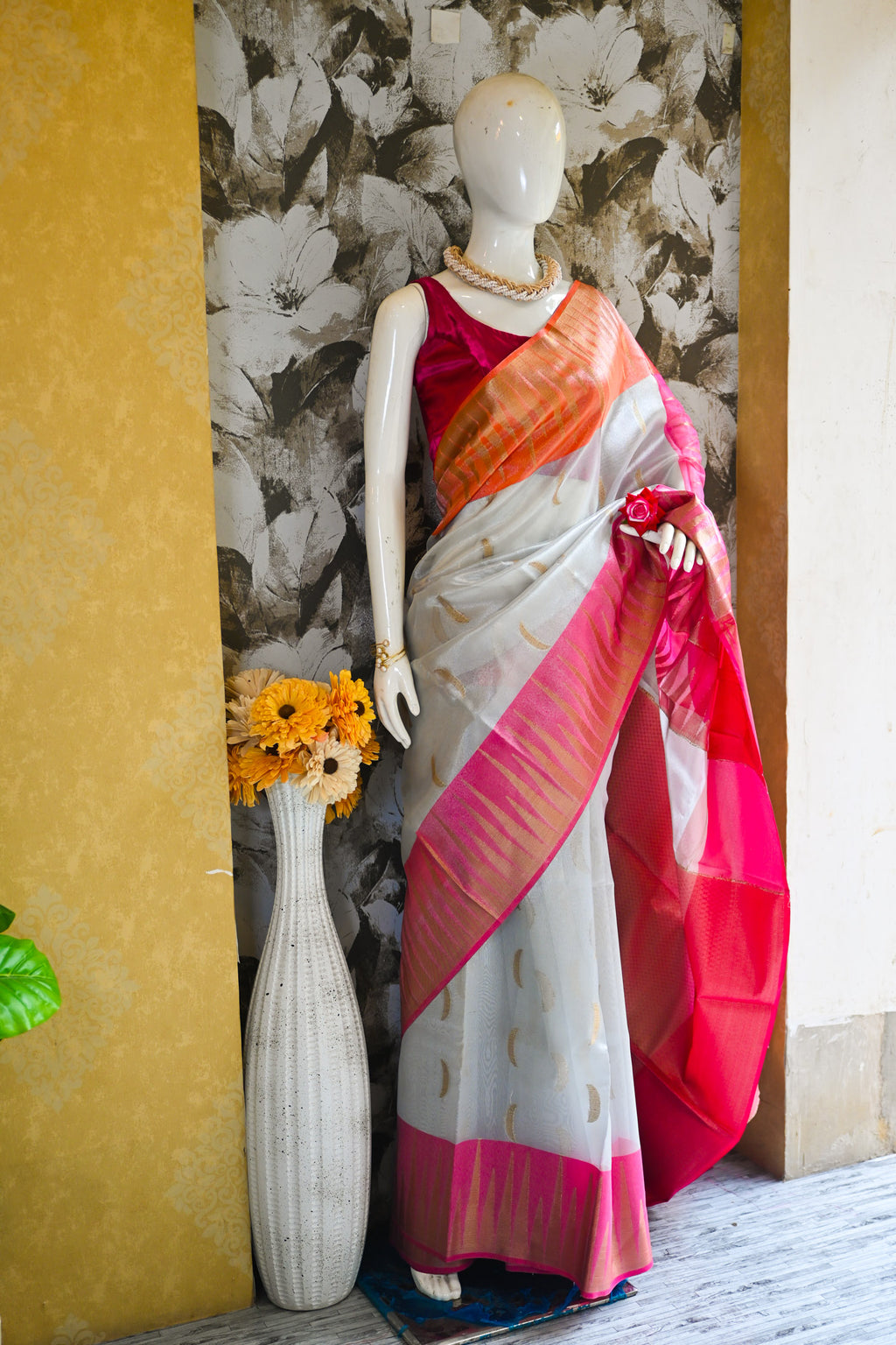 Tissue Silk Saree with Rani Pink Border | Festive Saree