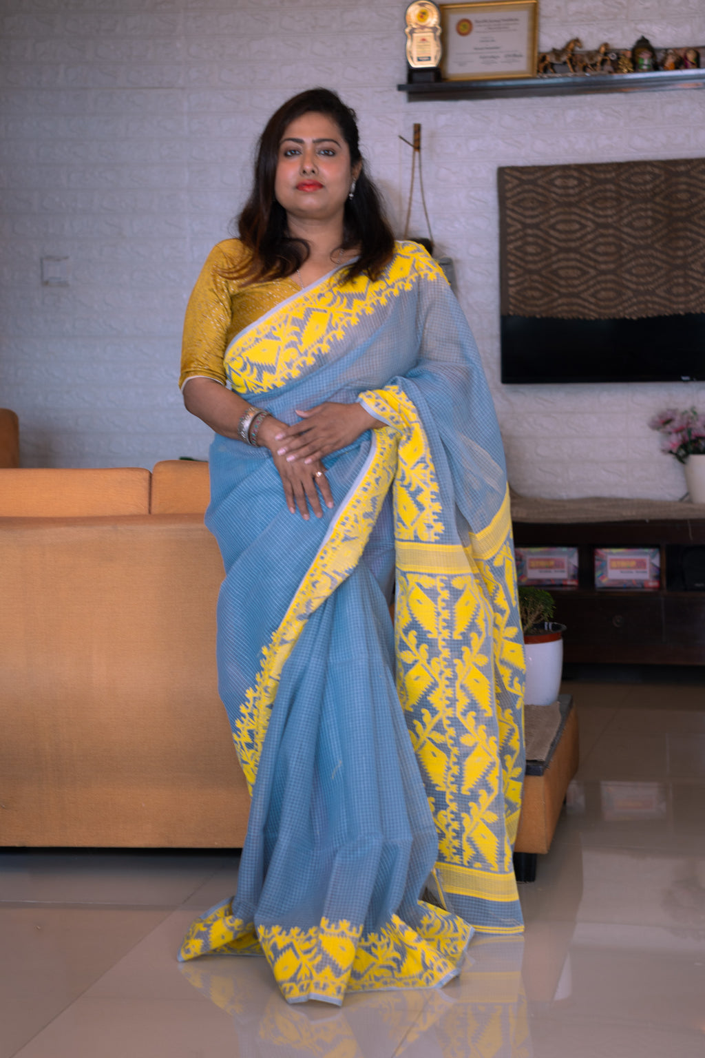 Gray Kota Dhakai Jamdani Saree