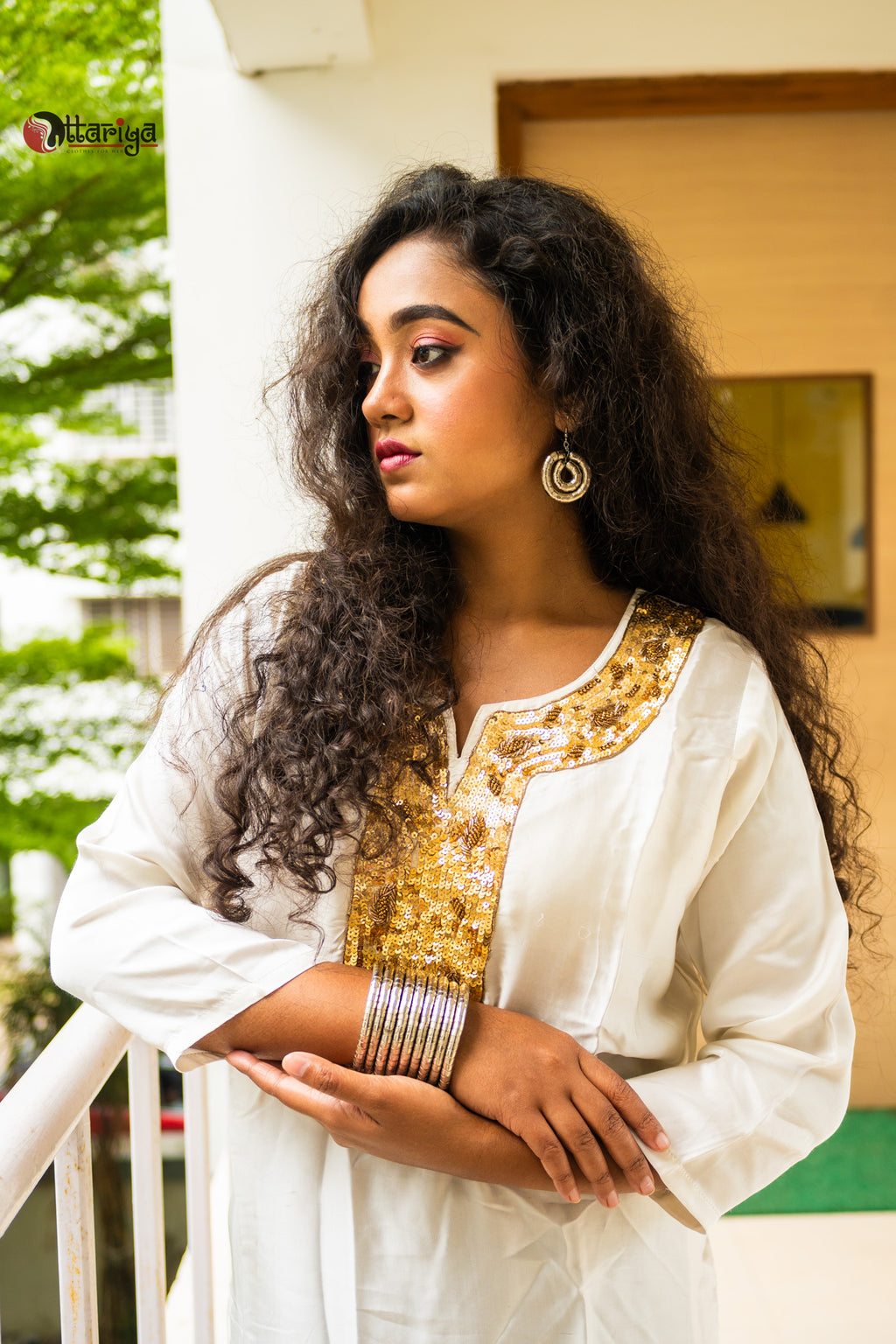 Elevate your festive wardrobe with a kurta featuring a V- neck placket. The straight cut, three-quarter sleeves, and calf-length design exude a timeless appeal, while the pure silk fabric ensures an effortless yet polished fit.