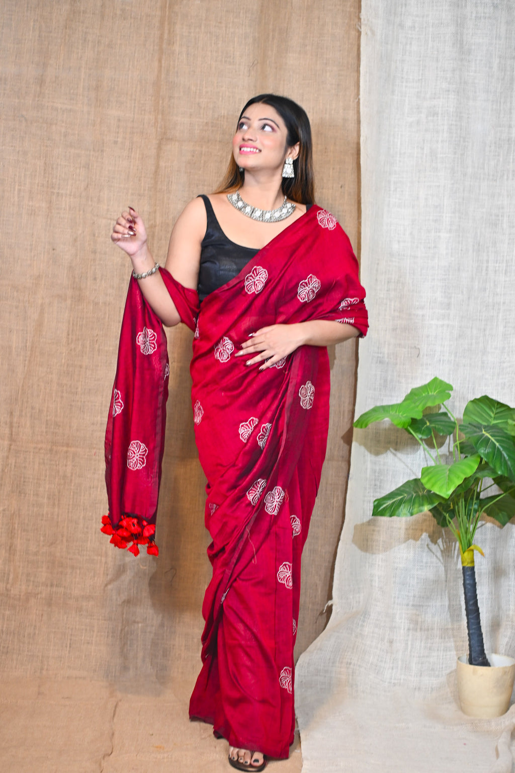 Wine floral Saree